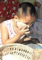 Even the very young take great care covering their faces - it protects from the sun and improves the skin. |