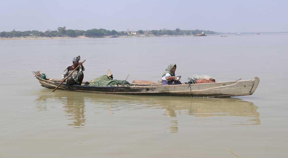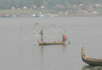 They lay nets along river bottom with floats - about 50m long. We saw only tiny fish being caught this way. |